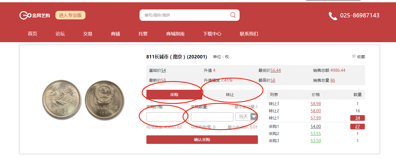 2、专业版买卖操作说明: ①挂单:输入采购/转让价格、数量,点击确认采购/转让; 如已有订单价格符合你所挂出的采购/转让订单,则成交对应订单; 如无订单符合你所挂出的采购/转让订单,则订单显示到采购/转让订单中。