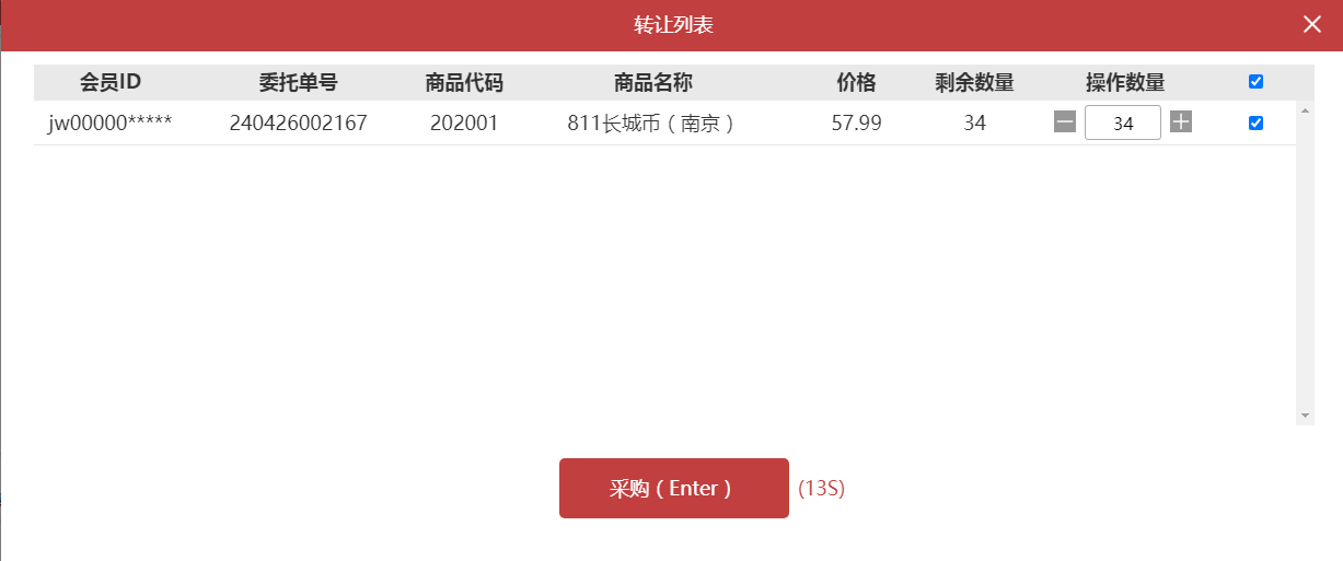 1、网页版买卖操作说明: ①挂单:输入采购/转让价格、数量,点击确认采购/转让; 如已有订单价格符合你所挂出的采购/转让订单,则成交对应订单; 如无订单符合你所挂出的采购/转让订单,则订单显示到采购/转让订单中。