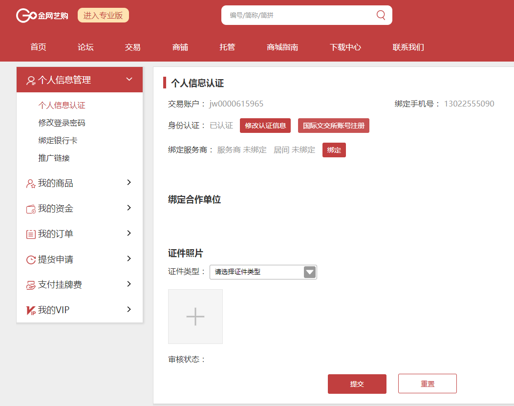 登录账户,进入“个人中心—个人信息—输入“姓名、身份证号码、银行卡号””点击保存。 点击“身份认证”,上传证件照片,等待审核即可。(预计1个工作日内审核完成)