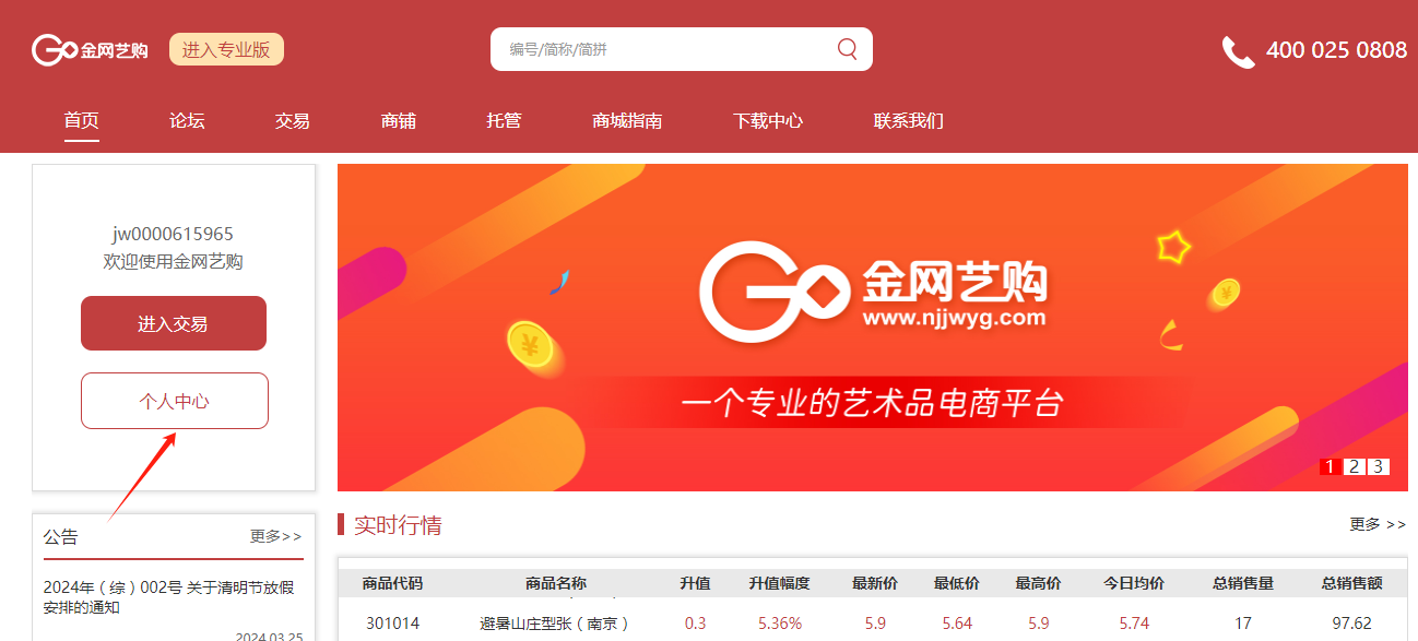 一、 打开金网艺购官网www.njjwyg.com或扫描下方二维码下载“金网艺购APP”: