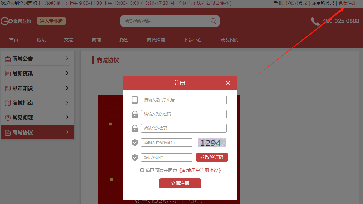 二、 点击“免费注册”,输入“手机号、密码、图形验证码、短信验证码”,勾选相关协议,点击“立即注册”即可: