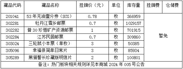 根据2024年006号公告,《江苏民居邮票》等藏品已转入本商城热门板块,现对转入藏品交易信息公示如下:
